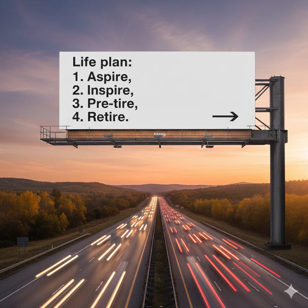 The punchline: retirement without a pre-tirement is a lifestyle vacuum. And nature hates a vacuum.